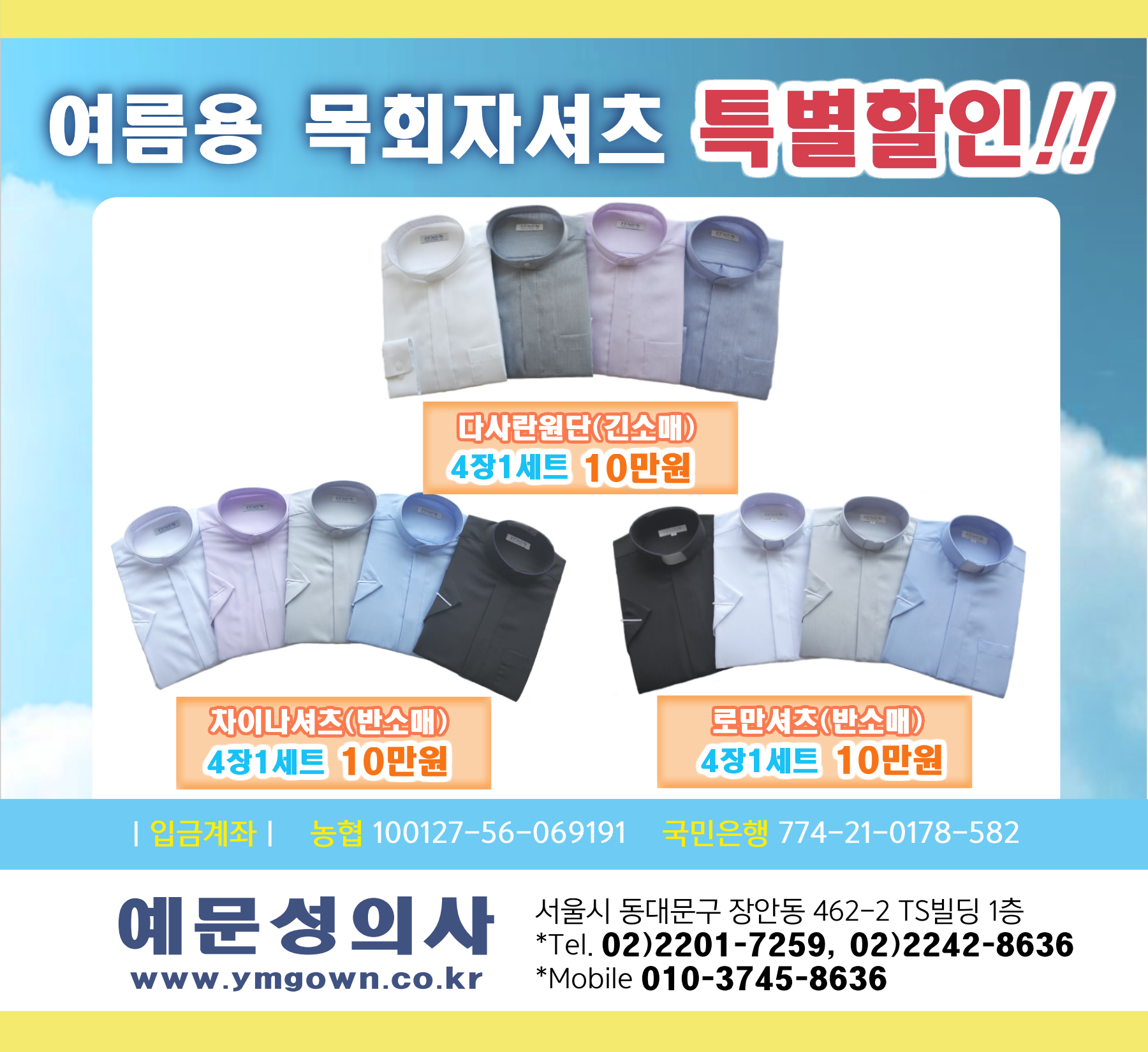 ★(예문성의사) 여름용 목회자 셔츠 특판★